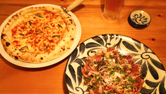 なんとこちらは薪窯で焼く手づくりのピザが食べられるので、もちろんオーダー!